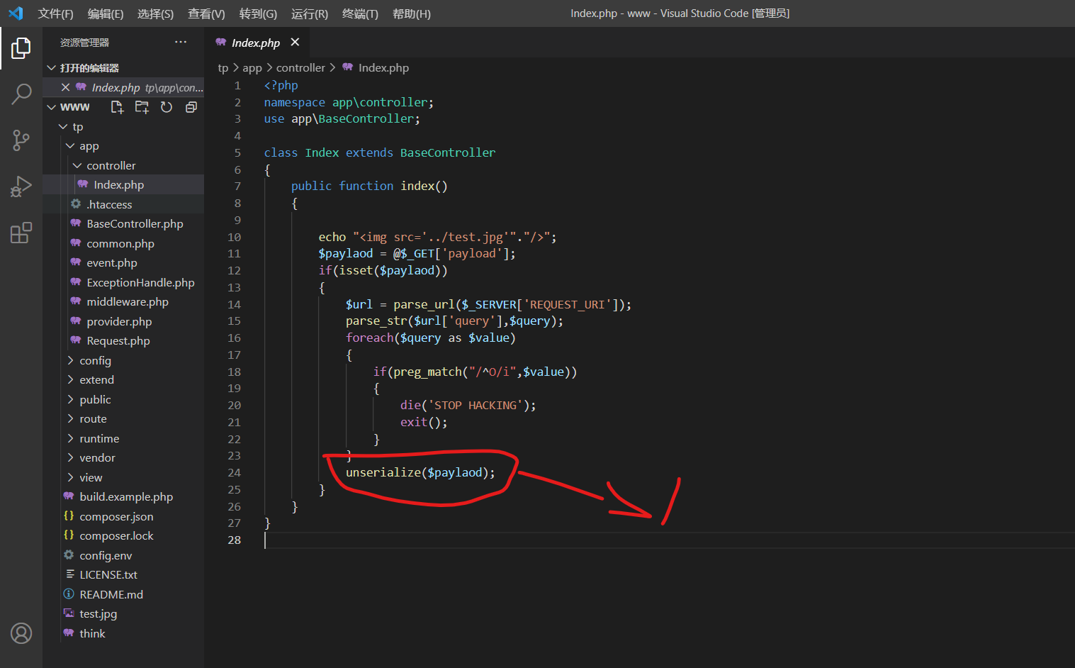 想到既然他不是原生态的,也知道他是thinkphp框架,那就看一下他这个版本有没有反序列化的漏洞
