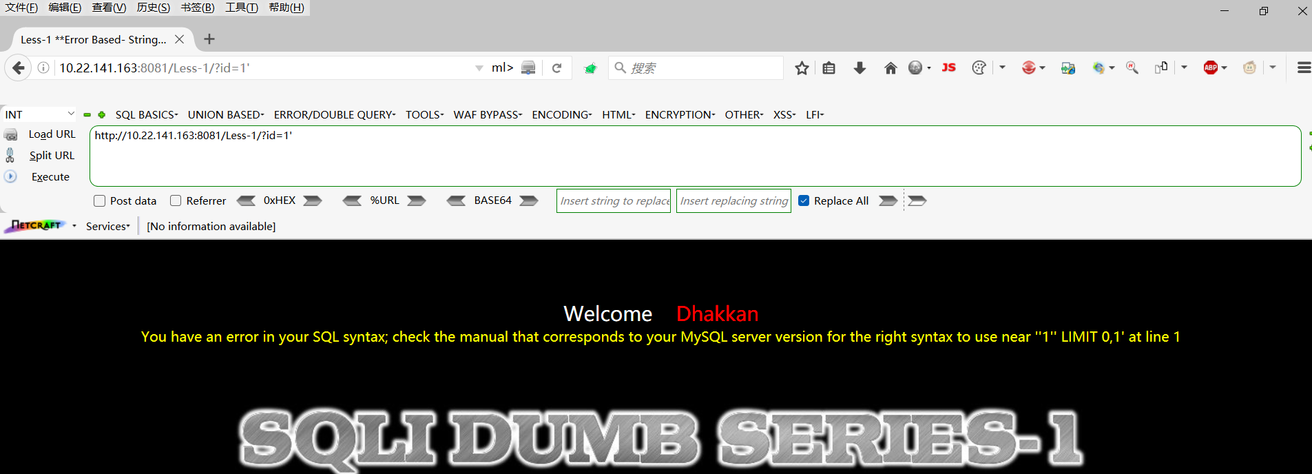 $sql="SELECT * FROM users WHERE id='1'' LIMIT 0,1";多了一个',很显然会发生报错。这时候我们是不是就得到了一个信息,服务器把我们的参数内容全给执行了。实验一下看看:
