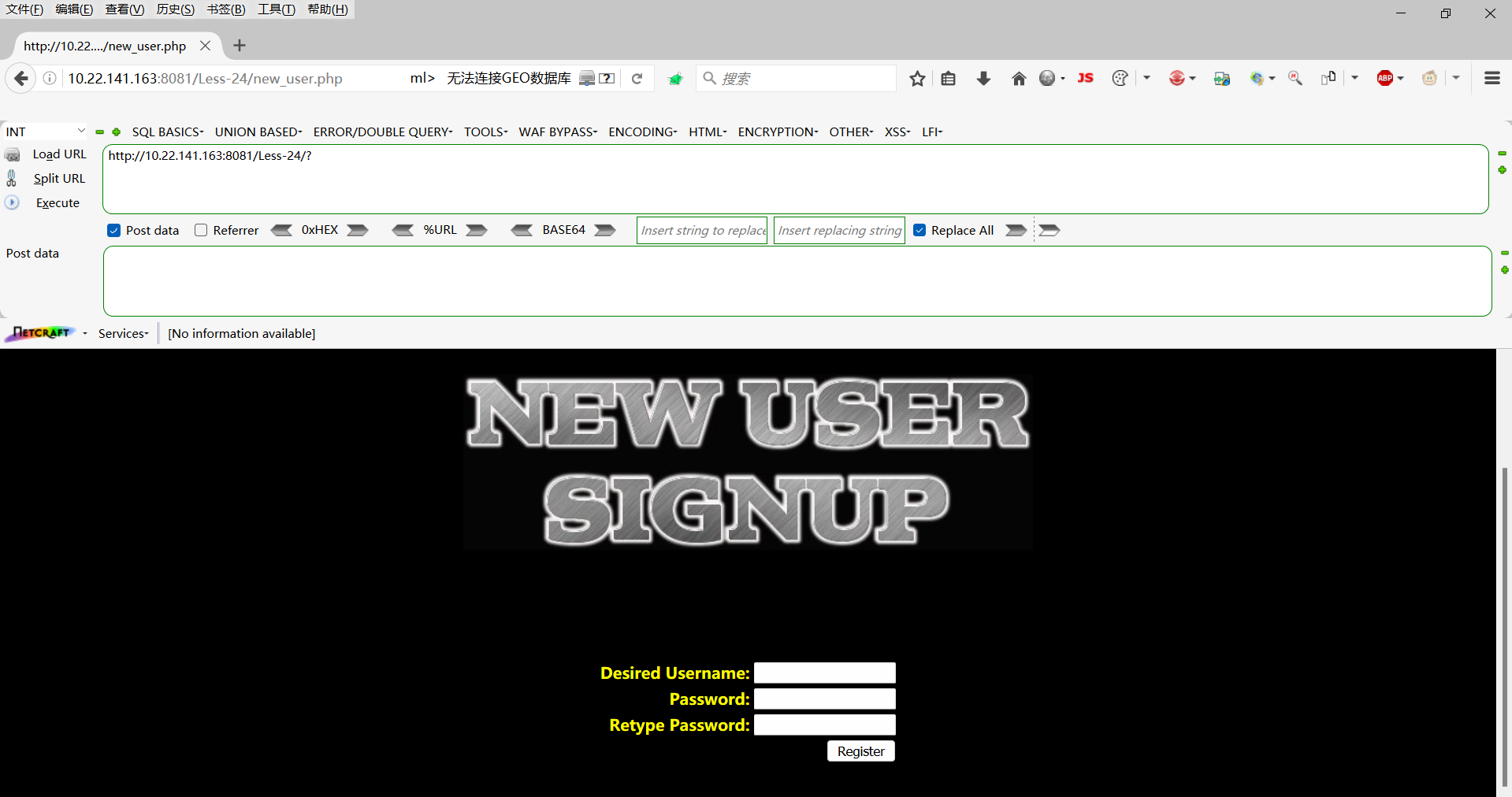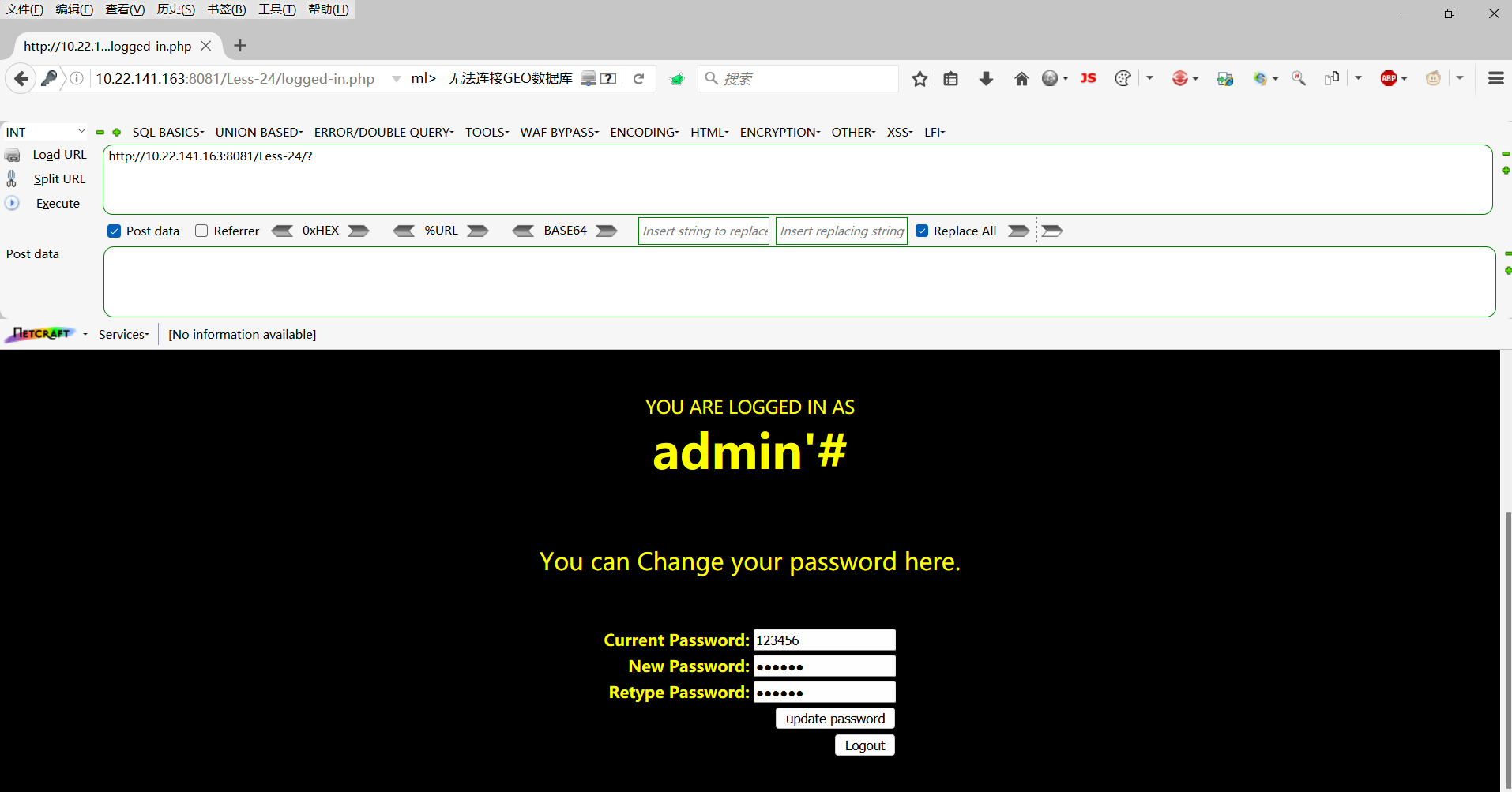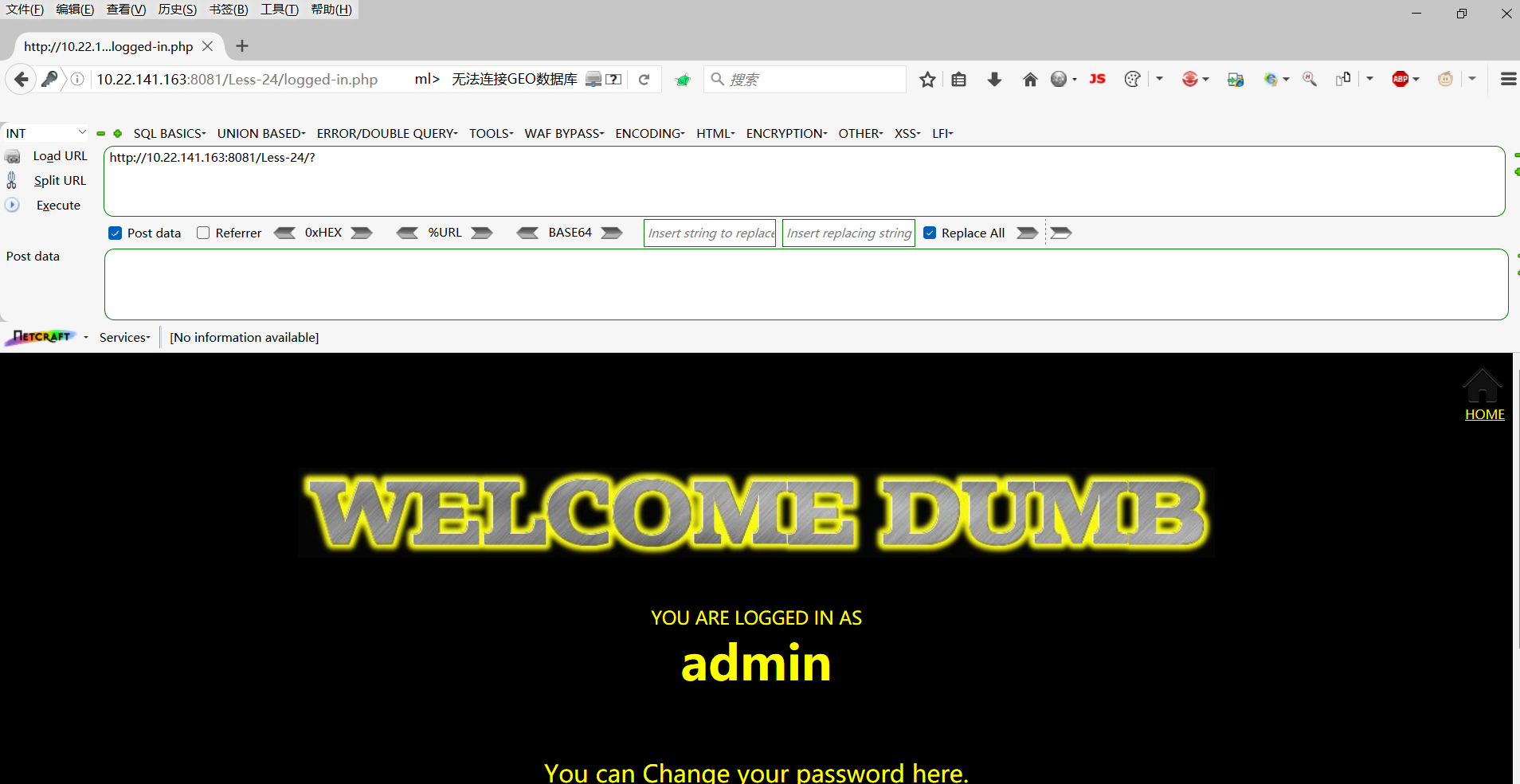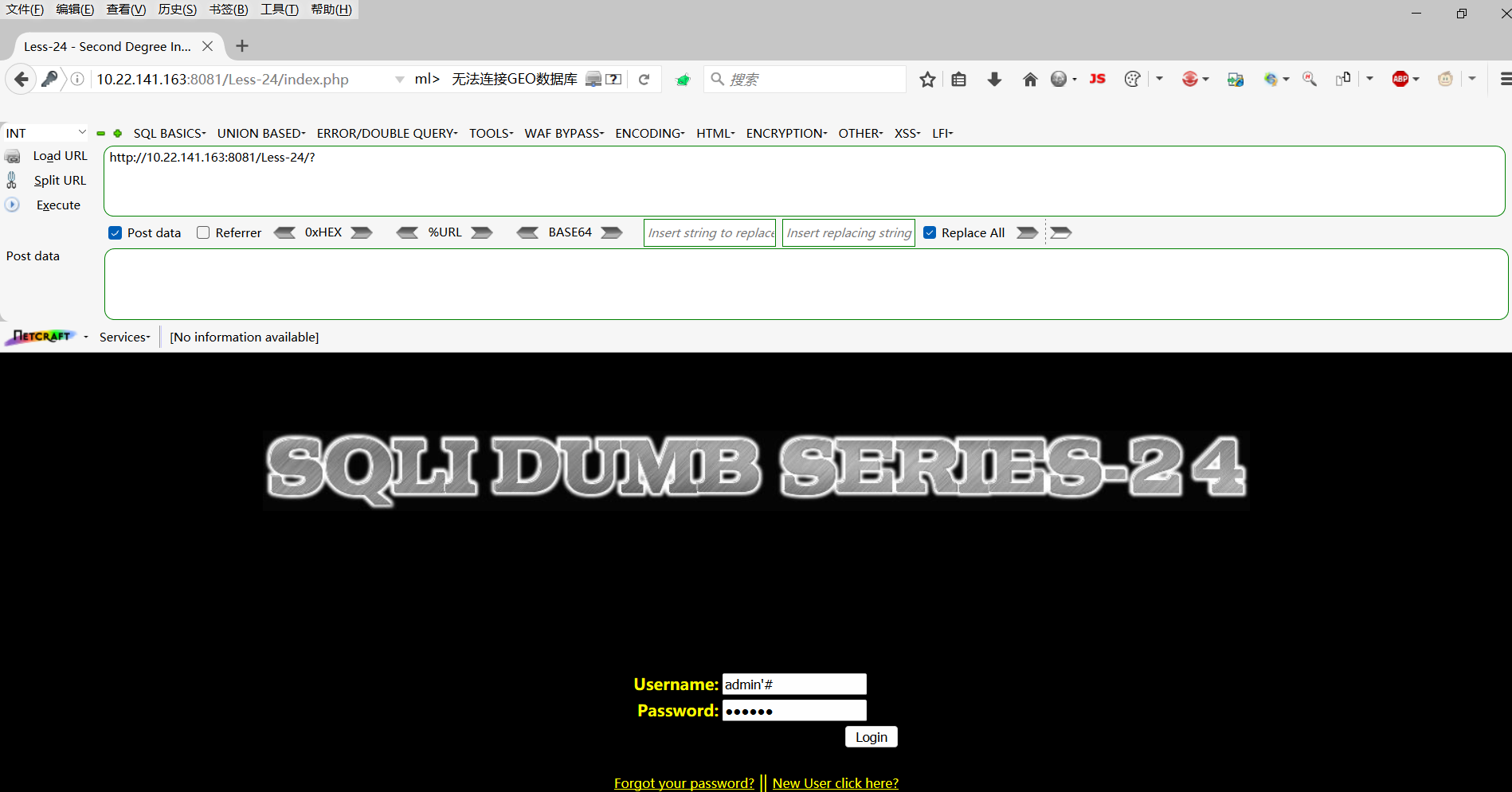 24关就是二次注入演示一下就知道什么叫二次注入了。