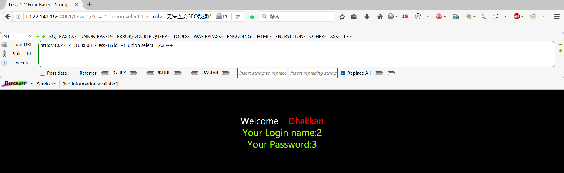 ?id=-1' union select 1,2,3 --+可以看到有两个。